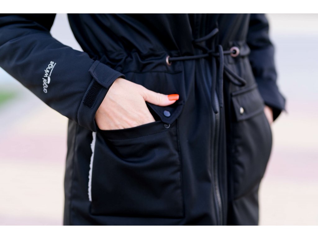 Parka má velmi chytré řešení kapes – shora na zapínání, do které můžete vložit drobnosti a nevytratit je a zboku do skryté kapsy si schováte ruce. Beránek uvnitř kapes poslouží k zahřátí zimou zkřehlých prstů.
