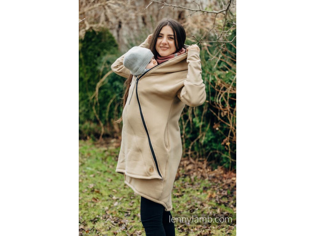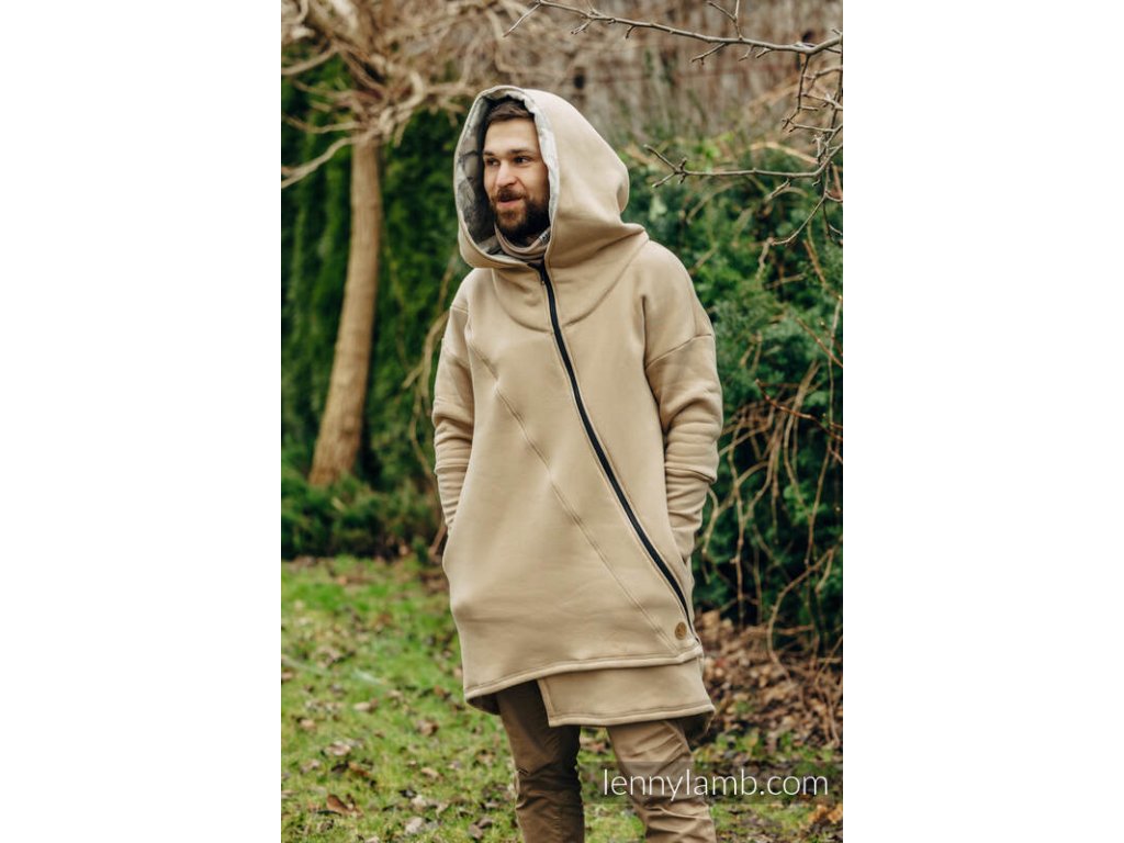 Asymetrická mikina s kapucí od LennyLamb je univerzální, využijete jí při nošení na břiše i na zádech a to ať už v šátku či nosítku nebo v těhotenství, zároveň je mikina vhodná pro ženy i pro muže.