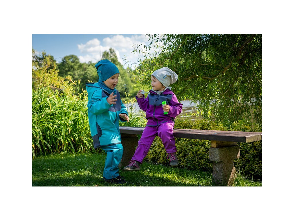 Softshell, materiál možná z kosmu, možná se nám maminkám jenom zdá. Je v něm teplíčko, když kolem fouká jako o závod, ale když vysvitne sluníčko, tak se díky speciální membráně v něm děti nepotí. Dnes se tento materiál vyrábí zejména z recyklovaných PET lahví. Menší děti jej využijí na bundičce prakticky na celý rok, ale na kdy se nejvíce hodí, naleznete v našem rádci. Materiál není zcela voděodolný, jako pláštěnka, ale menší deštíky zvládne s přehledem. Malé nehody je možné otřít jen hadříkem. Softshell je opatřen speciální úpravou s vysokou odolností v otěru. Voděodolnost membrány: 15000 mm/H2O, Prodyšnost membrány: 10000 g/m2/24hod.