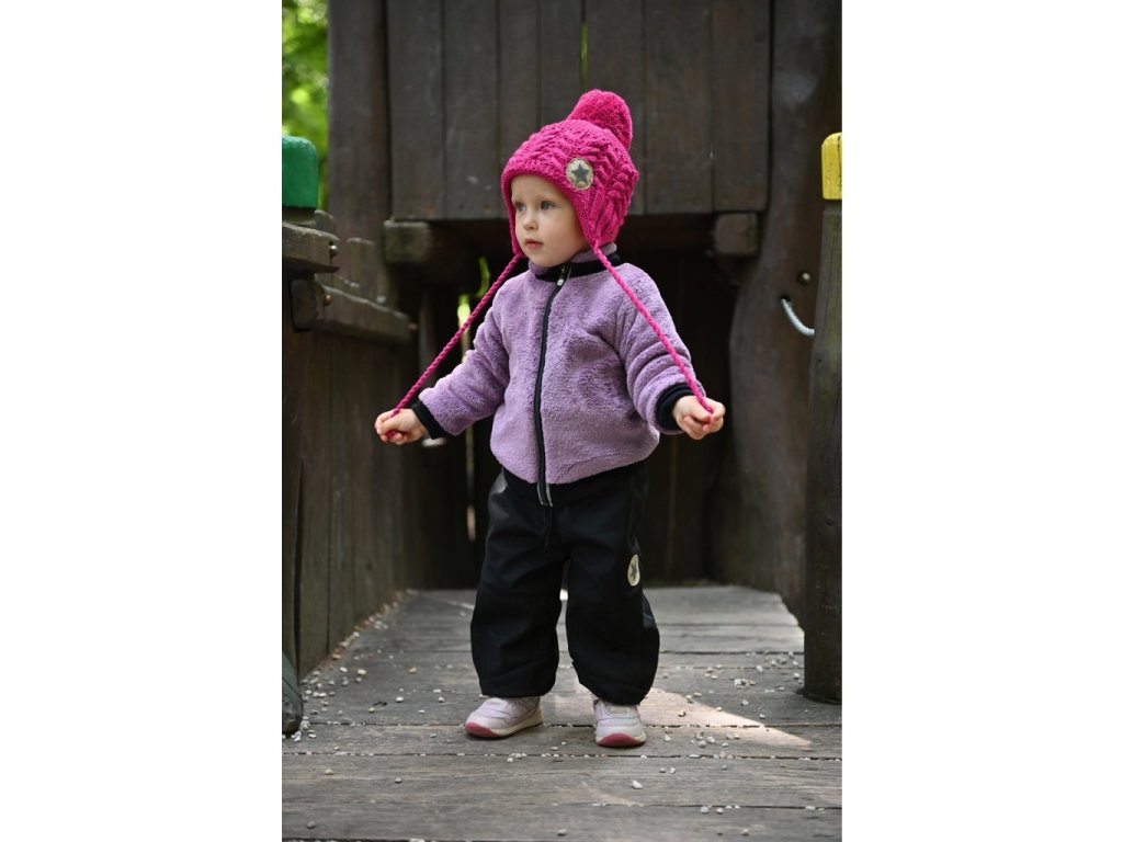 Čepice pletená zavazovací copánky LA Outlast ® je podšitá jemným bavlněným úpletem s příměsí materiálu Outlast®. Čepička je doplněna o módní bambuli a praktické provázky pro zavázání.