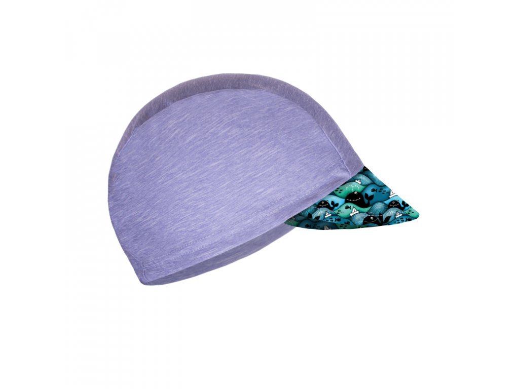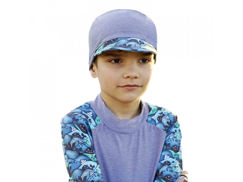 Dětská funkční čepice s kšiltem UV 50+, žíhaná holubičí šedá, Velryby kluk