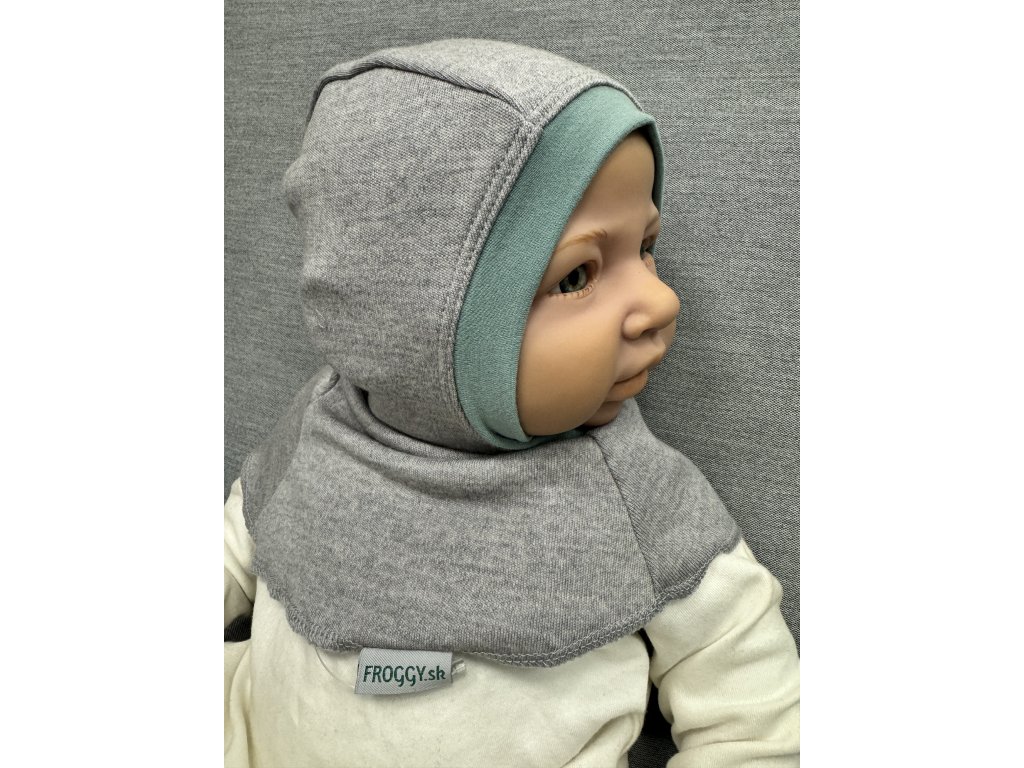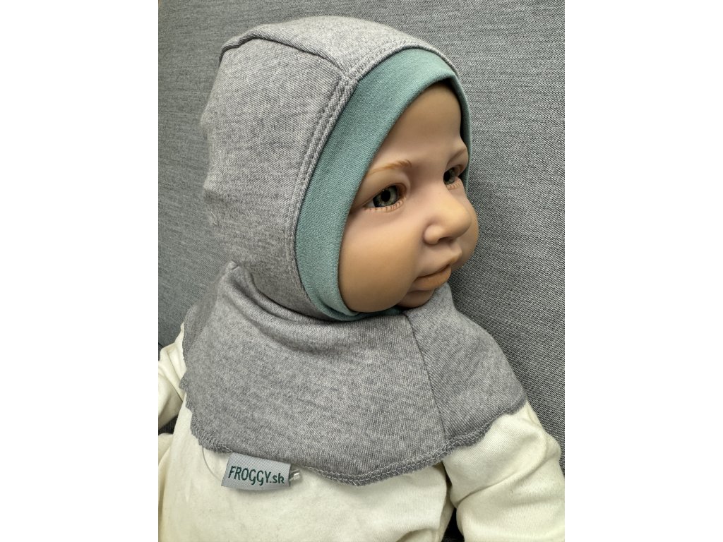 Dětská merino kukla Blatné - šedý melír/mentolová modrá