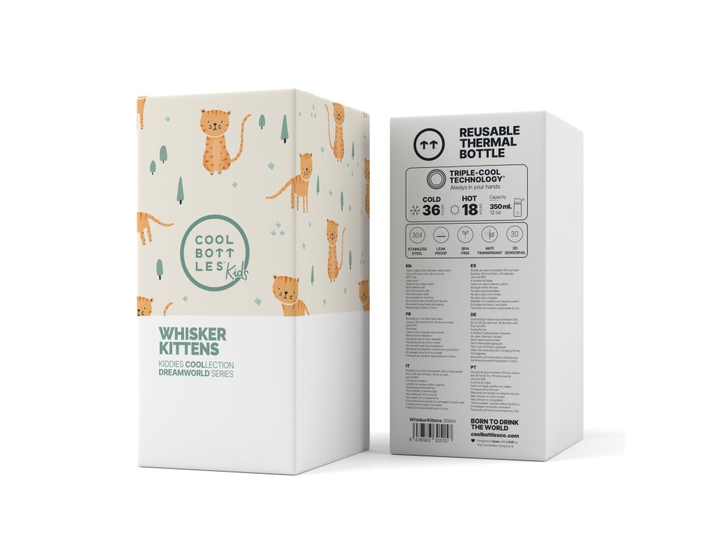 Dětská nerezová termoláhev COOL BOTTLES Kiddie Whisker Kittens 350 ml 3D