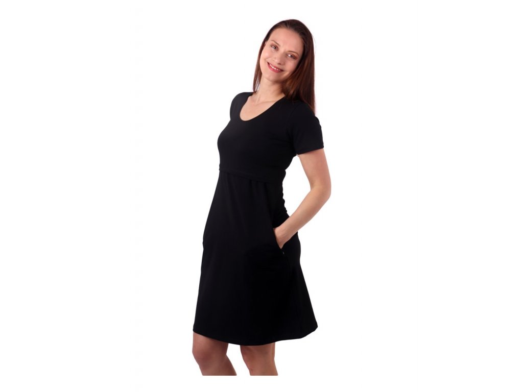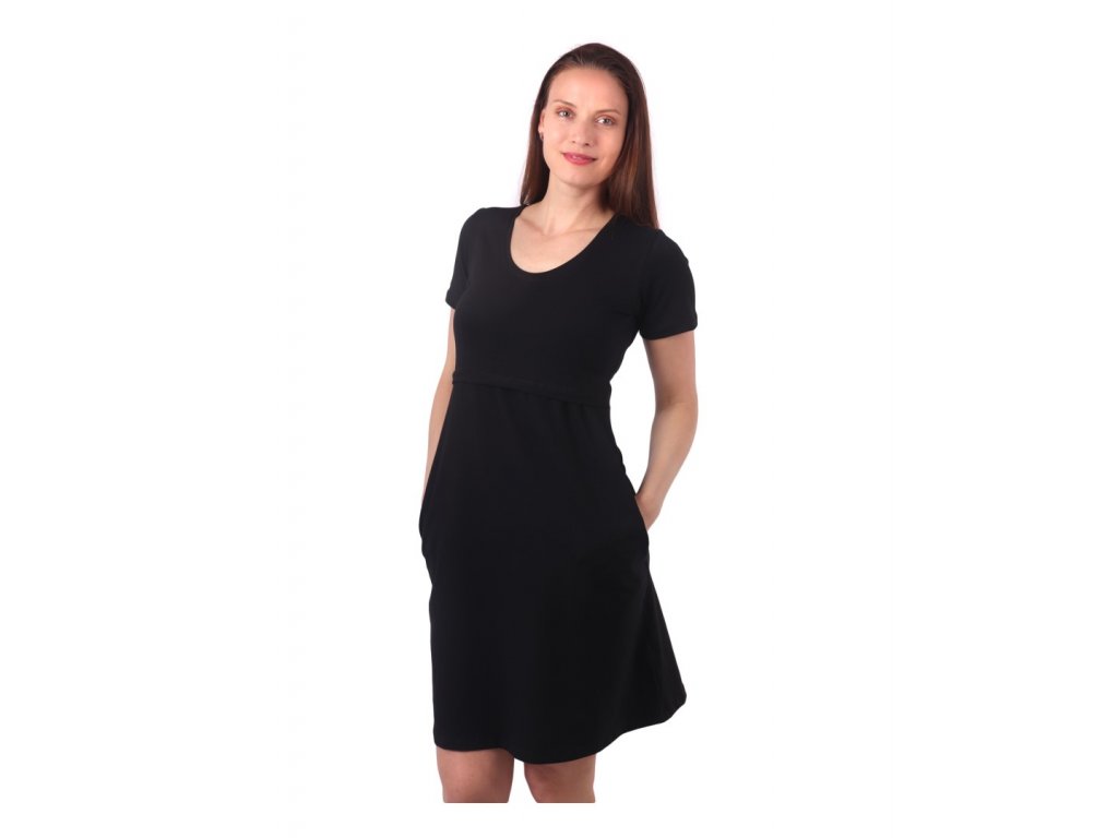 Kojicí šaty s kapsami Tea, krátký rukáv, černé