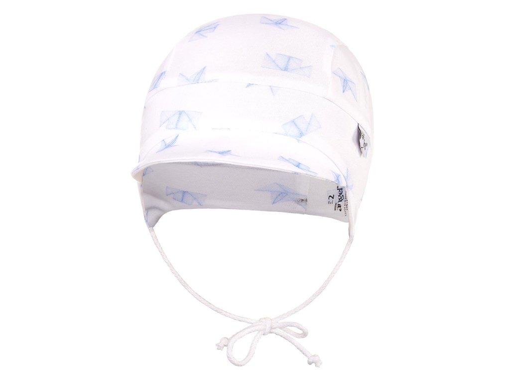 Kšiltovka je tvarovaná přes ouška, aby chránila proti nafoukání. Zavazování na šňůrky zabrání sjíždění z hlavičky u ležících miminek.