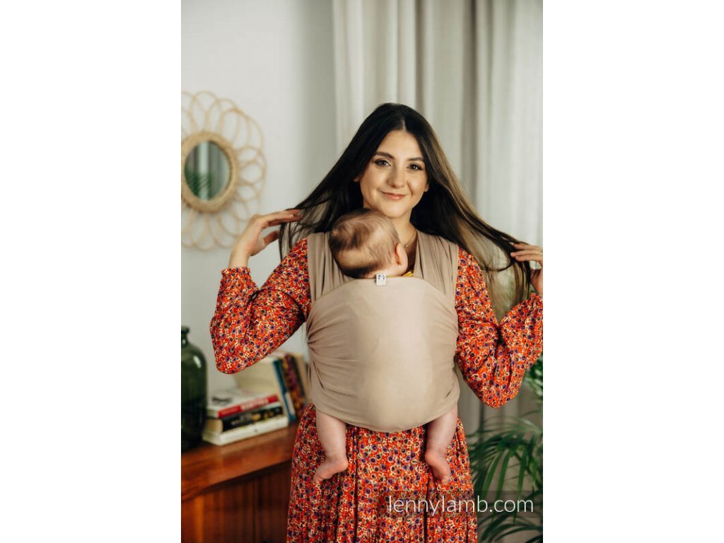 Zamilujete si jednoduchou manipulaci s ním. Předvázejte na sebe doporučený úvaz pro elastické šátky kříž s kapsou ven, šátek na sobě utáhněte a miminko jen vložte a roztáhněte popruhy, odpadá zde utahování jako u klasického šátku, proto ho doporučujeme pro začínající maminky, které si nejsou jisté manipulací s malými miminky. Další výhodou je, že šátek můžete nechat předvázaný na sobě, a tak je neustále připraven na vložení vašeho miminka.
