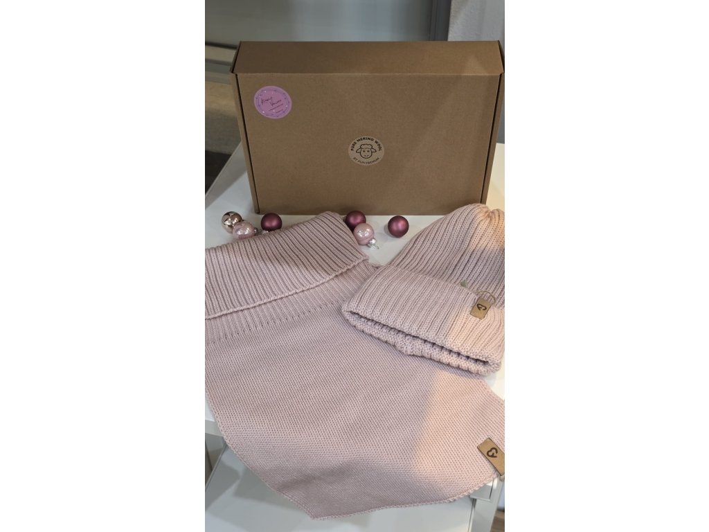 Merino čepice a nákrčník pro dospělé – Dust Pink