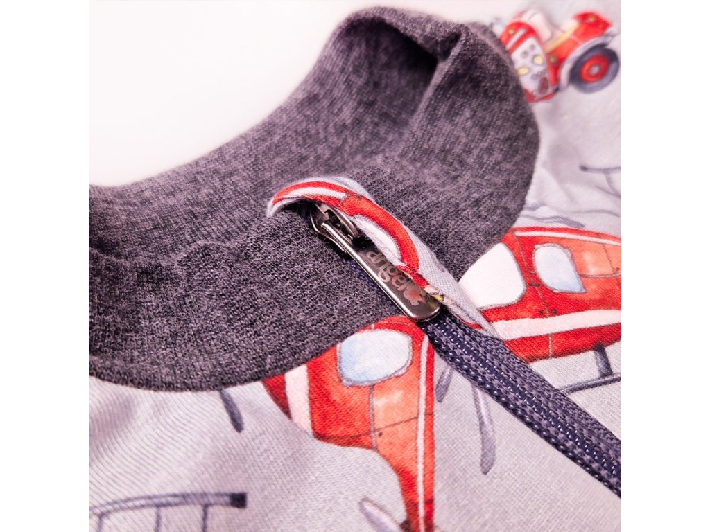 Pohodlná dětská podšitá mikina s kapsami je správnou volbou pro volný čas i na vycházky do města. Mikina má vepředu praktické zapínání na zip a u krku je zakončena slušivým stojáčkem. Po zapnutí můžete jezdec zipu schovat do speciální krytky a zabránit tak otlačení brady. Na předním díle mikiny v oblasti prsou je umístěna ozdobná aplikace s reflexní hvězdou, která zvýší viditelnost dítěte ve tmě.
