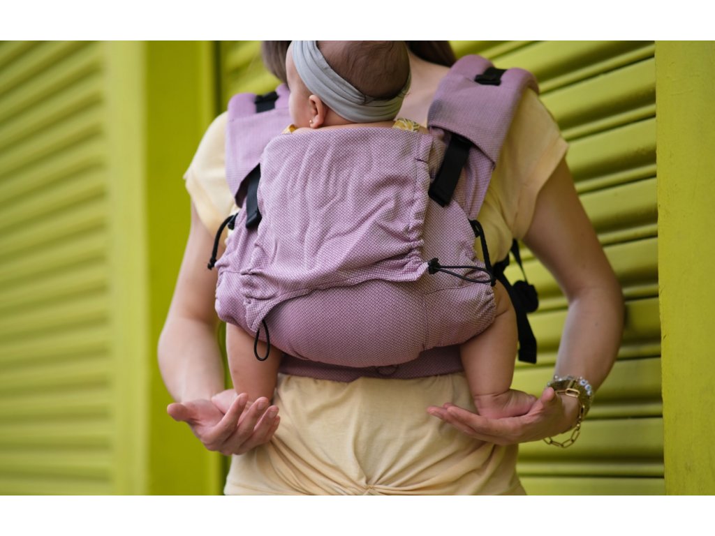 Je možné nastavit výšku zádové opěrky pomocí pásků po stranách. Rovněž je možné upravit šířku sedu a to pomocí speciálního systému patentků. Tímto jednoduchým způsobem můžete upravovat nosítko na míru aktuálním potřebám dítěte.