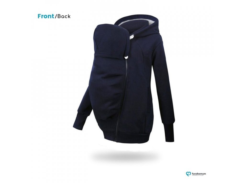 Mikina na nošení dětí, která vám umožní nosit dítě vepředu nebo vzadu.