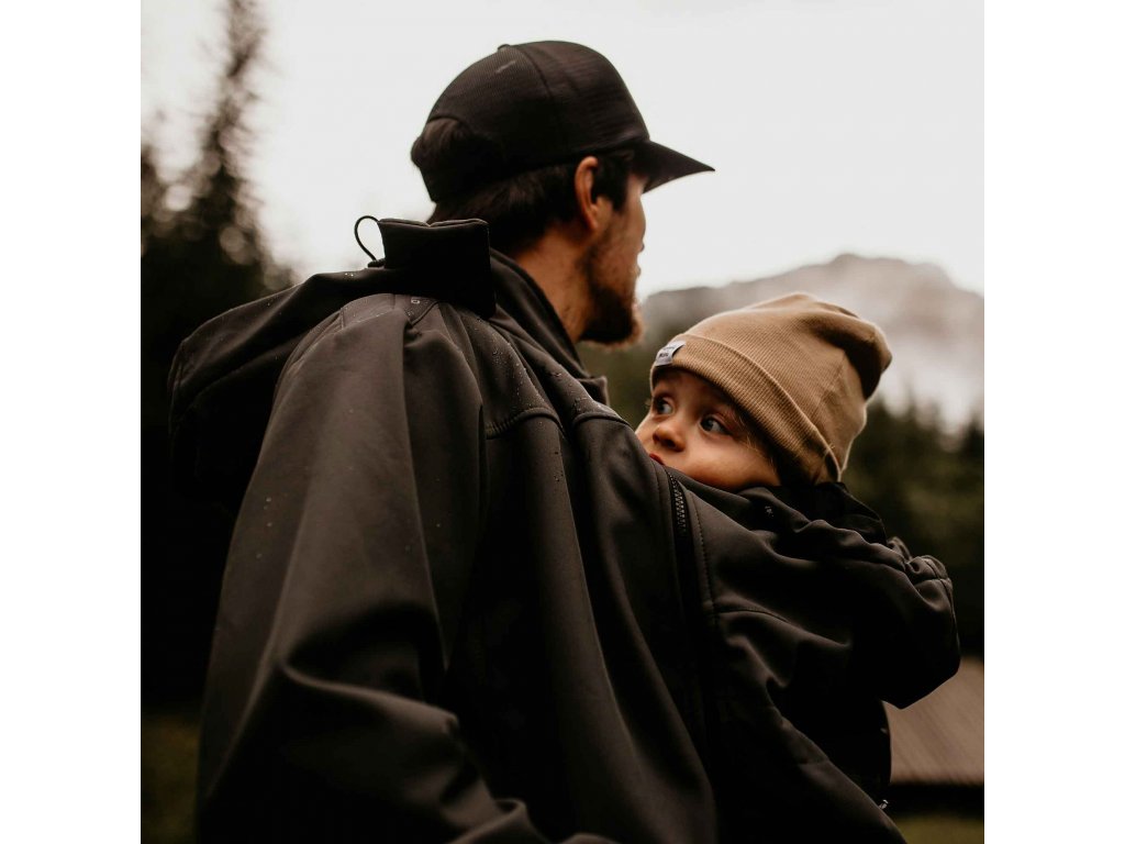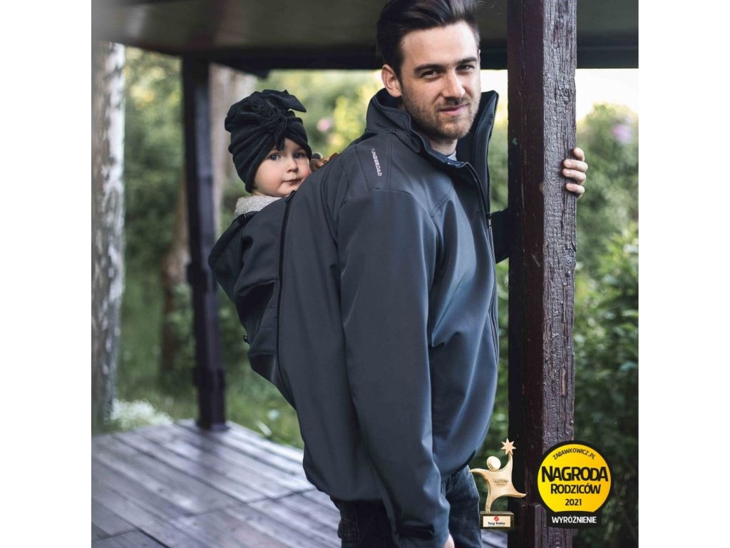 Softshellová bunda ELBRUS pro tatínky na nošení dítěte ve verzi PŘEDNÍ/ZADNÍ