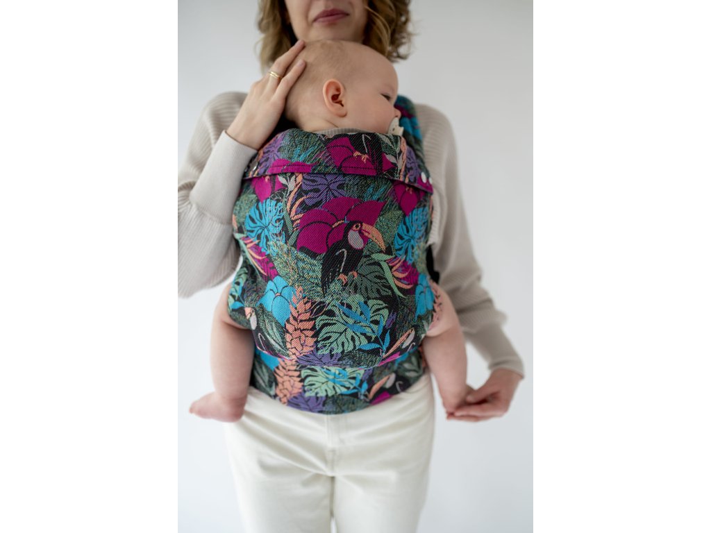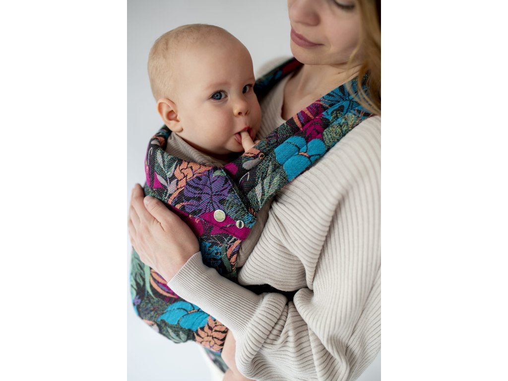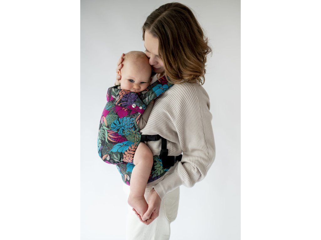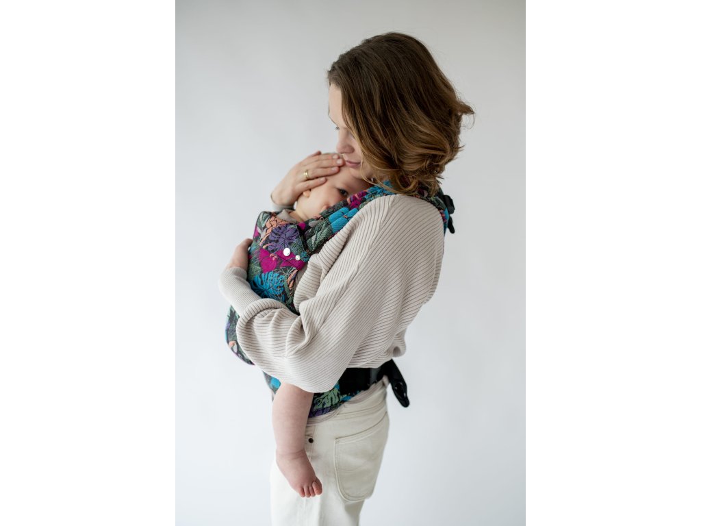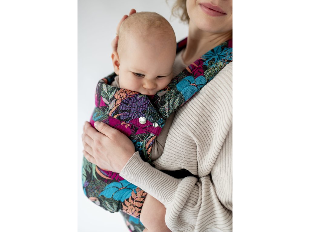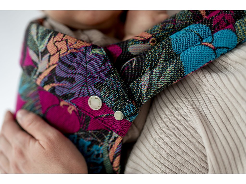 U Qusy nenajdete žádné věci navíc. Patentky upravující výšku límce zdobí nosítko a dodávají mu kouzlo. K nastavení délky ramenních popruhů byly použity nastavovací popruhy a jemné magnety, aby látka držela na správném místě, když dítě nosíme na zádech.
