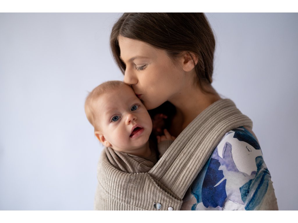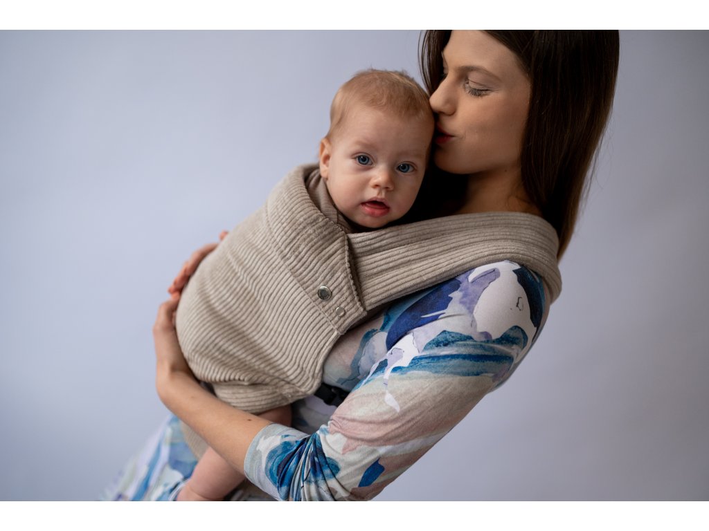 Manšestrová látka ze 100% bavlny. Tkanina je měkká a pevná, aby poskytla miminku i dospělému maximální komfort.