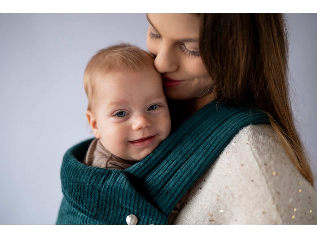 Manšestrová látka ze 100% bavlny. Tkanina je měkká a pevná, aby poskytla miminku i dospělému maximální komfort.