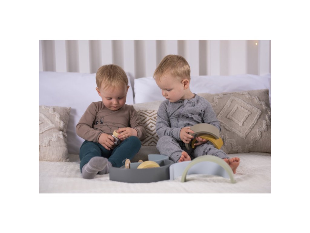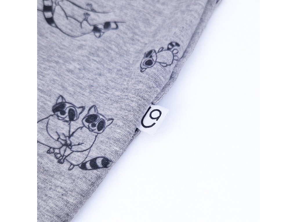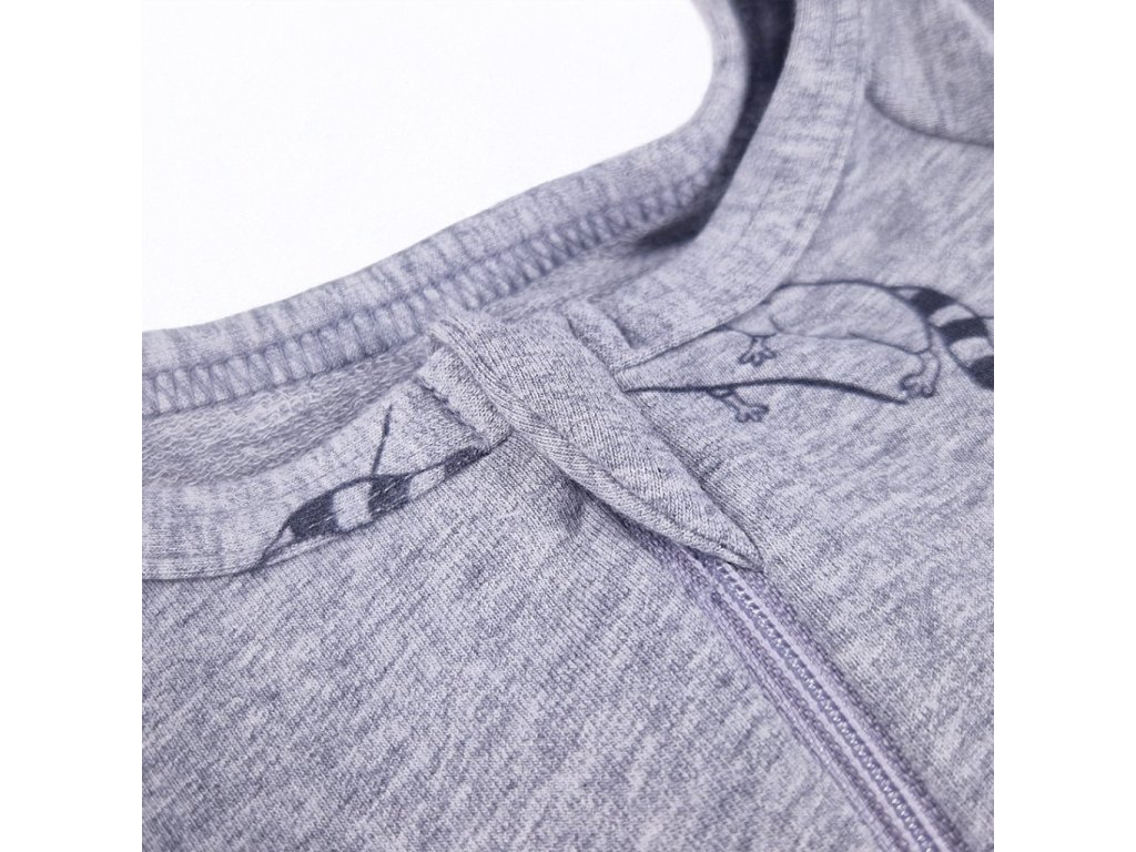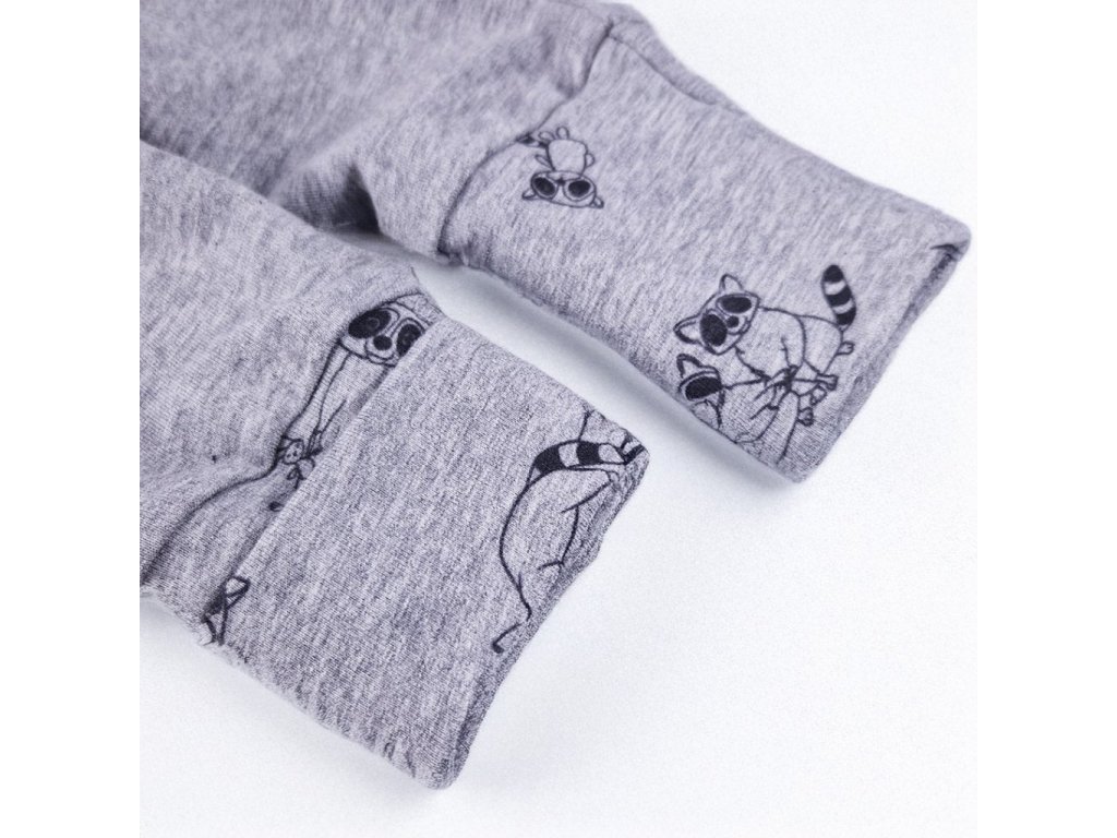 Pohodlný dětský overal je střižen ze slušivé kombinace dvou vzhledově rozdílných materiálů - jedné barvy a módních pruhů. Overal má dupačkové nohavice a u krku je zakončen stojáčkem. Rukávy jsou dlouhé a mají široké náplety, které můžete v případě potřeby ohrnout a upravit tak délku rukávů podle aktuální potřeby. Overal se zapíná na dlouhý zip, který usnadní oblékání. Po zapnutí lze jezdec zipu schovat do speciální krytky pod bradou, a zabránit tak otlačení brady. Přední stranu overalu zdobí potisk s motivem zvířátka. Overal má uvnitř nažehlené etikety, které netlačí a nadráždí jemnou dětskou pokožku.