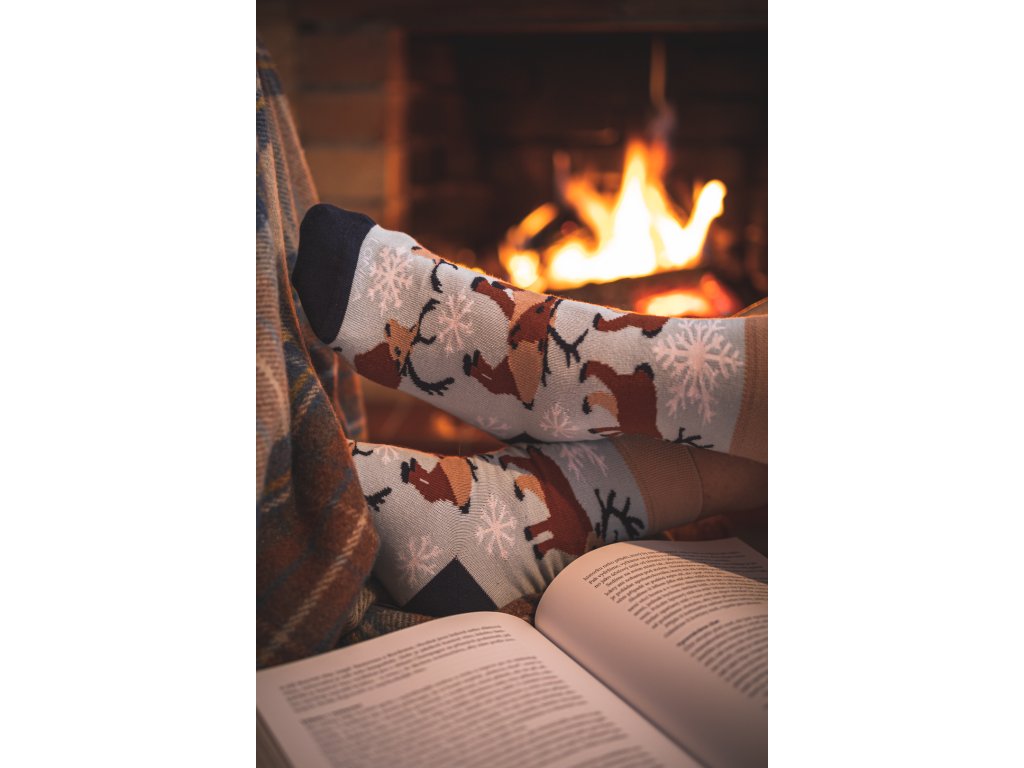 Dětské tématické ponožky s "vánočním" a "zimním" obrázkem, česaná bavlna s elastanem, řetízkovaná špice a nestahující pique lem zajistí komfort při celodenním nošení.